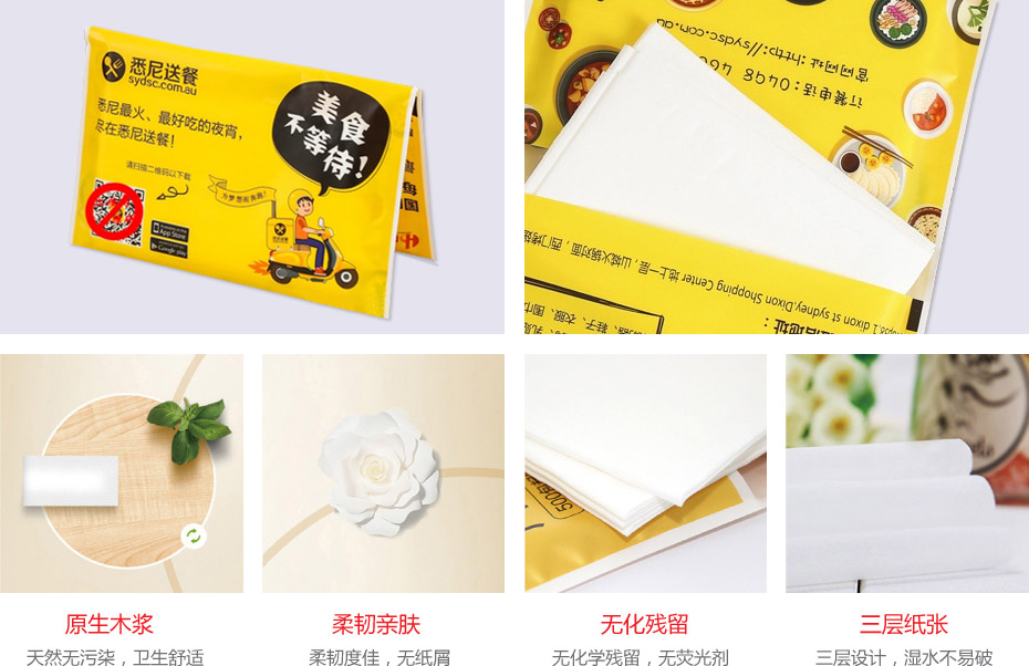 | 纸巾材质 | 100%原木浆,450度高温处理 |