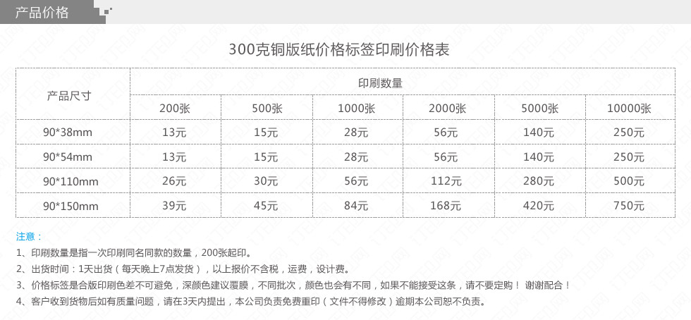 注:订印网不承担商品之外的其他引申费用。